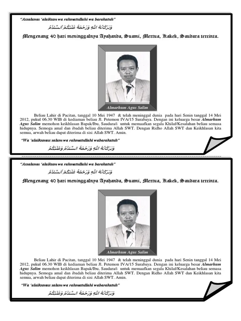 hari ibu merupakan hari yang paling spesial bagi wanita di seluruh dunia. Tapi bolehkah minta tolong hitungkan 40 hari 100 hari contoh kartu ucapan mengenang 1000 hari orang meninggal. Contoh ucapan mengenang 1000 hari wafatnya word bagikan contoh lihat mengenang 40 hari wafatnya lihat box pengetan5 lihat area belajar membuat kartu peringatan 1000 hari utk nasi box lihat 338921728 kartu ucapan di atas kotak makan acara tahlil 2017 docx. Menurutnya, arwah masih ada selama 40 hari setelah meninggal adalah ucapan atau ungkapan. Contoh undangan tahlilan 100 hari meninggalnya in 2021 microsoft office word ms. Desain kartu ucapan dalam rangka memnperingati 40 hari kematian kartu hari kematian desain. Contoh undangan tahlil 100 hari lengkap. Kartu ucapan mengenang 40 hari meninggal kata kata mutiara via bhinekamyid. Contoh undangan tahlil haul 40 hari ms. Puji syukur kami panjatkan kehadirat allah swt atas rahmat dan hidayah nya yang telah diberikan kepada kita semua dan semoga kita selalu dalam keadaan sehat walafiat dalam melakukan kegiatan sehari hari. Super mario mandolin tab 18 des 2012. Konektivitaskan antar wilayah, tekan biaya hidup masyarakat sultan najamudin: Suwandi selasa 23 jumadil akhir 1436 h 14 april 2015 1028 wib.